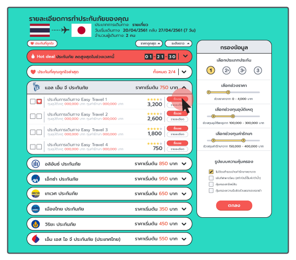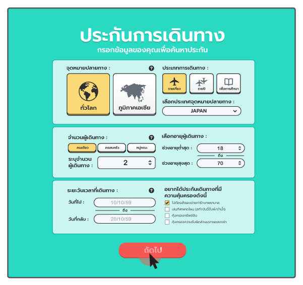 ขั้นตอนที่ 1 ค้นหาประกันภัยการเดินทาง