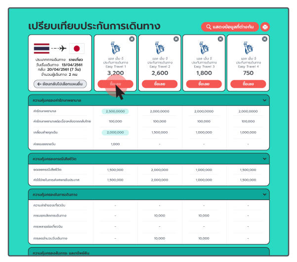 - เพื่อช่วยให้คุณค้นหาประกันที่เหมาะสม สามารถเปรียบเทียบประกันได้ก่อนการ สั่งซื้อ
