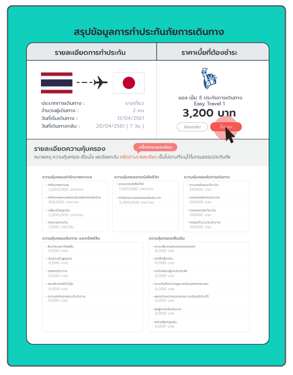 • ขั้นตอนการซื้อประกันภัยการเดินทาง